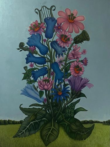 image shown Sublime Symphony of the Sentient Flower Orchestra 150x100cm oil on canvas 2025